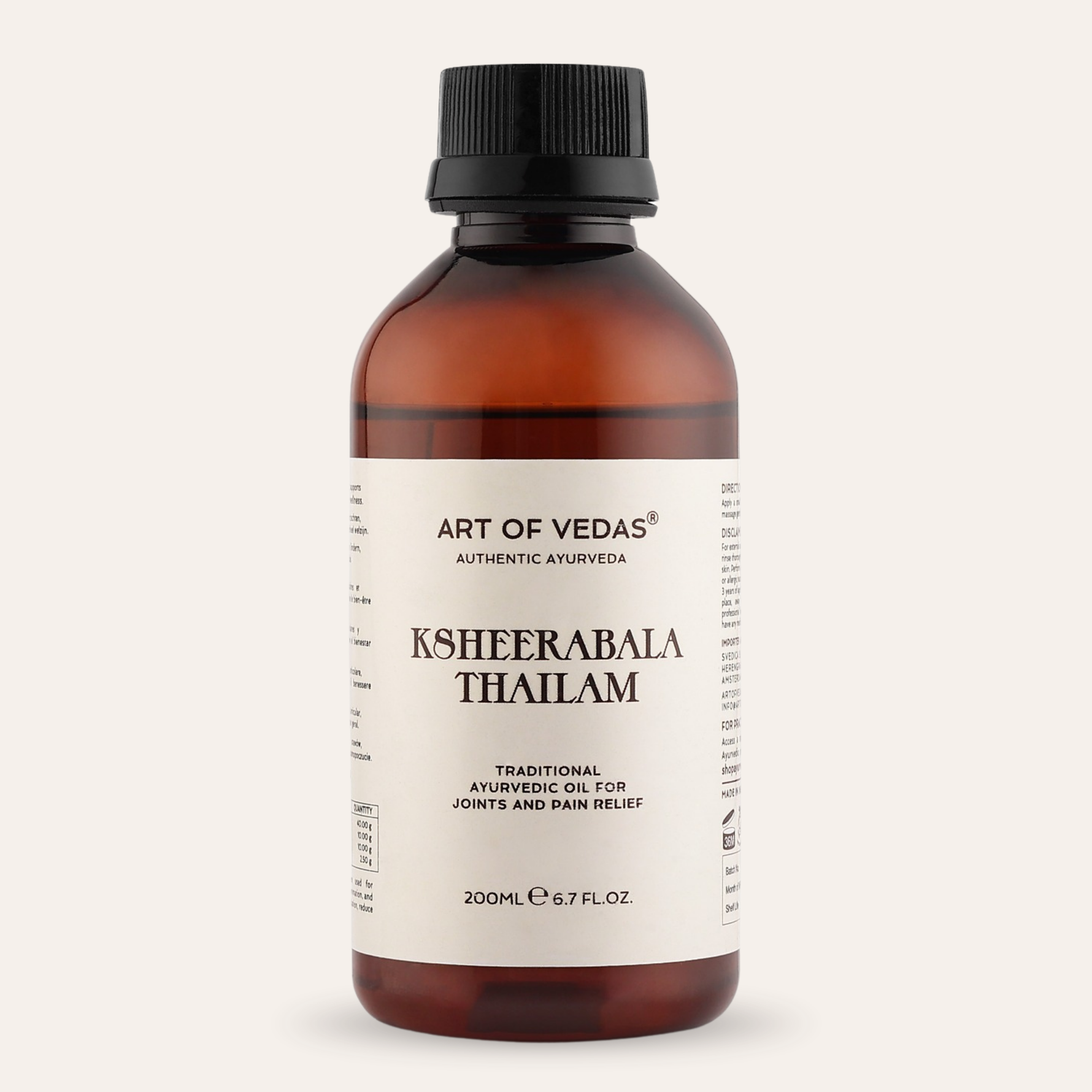 Yksikköhinta €105,00 perjantai lSäännöllinen Ksheerabala Thailam -öljyn käyttö hieronnoissa ja hoidoissa voi parantaa yleistä hyvinvointia, tehden siitä arvokkaan lisän päivittäisiin terveydenhoitokäytäntöihin.