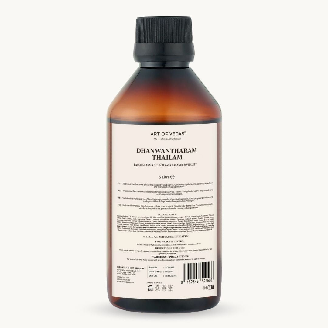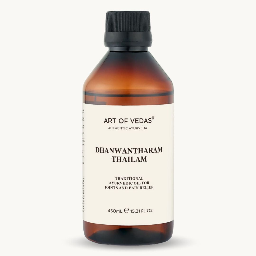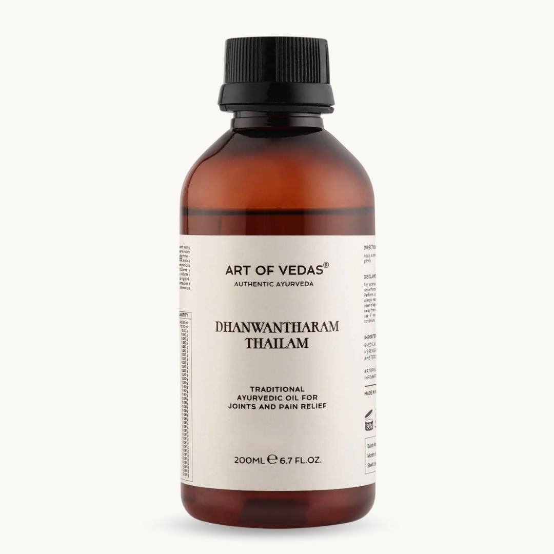 Dhanwantharam Thailam on ayurvedisten asiantuntijoiden taitavasti kehittämä sen merkittävän tehokkuuden vuoksi nivelten liikkuvuuden parantamisessa ja kivun lievittämisessä. Tämä perinteinen öljy yhdistää voimakkaita yrttejä, jotka tunnetaan tulehdusta ehkäisevistä ja uudistavista ominaisuuksistaan, tehden siitä ihanteellisen nivelreumaa, lihasjännitystä tai vammoista toipuvia varten. Säännöllinen hieronta Dhanwantharam Thailamilla edistää verenkiertoa, tukee kehon luonnollisia paranemisprosesseja ja vahvistaa tuki- ja liikuntaelimistöä, tarjoten kokonaisvaltaisen lähestymistavan fyysiseen hyvinvointiin ja elinvoimaan. Sen maadoittavat vaikutukset auttavat myös vähentämään stressiä ja edistämään mielen rauhallisuutta.